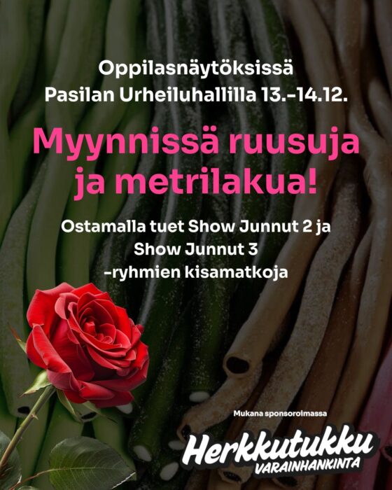 Oppilasnäytöksissä on myynnissä StepUp-tuotteita, kuten vaatteita, juomapulloja, kasseja ja lahjakortteja. Kokoja ja tuotteita on rajallisesti. Lisäksi koulutusohjelmien oppilaat keräävät rahaa kisamatkakassaan myymällä ruusuja ja metrilakua. Huomioithan, että koulutusohjelmilla maksutapana käyvät vain käteinen tai MobilePay, sen sijaan StepUp-tuotteita voit maksaa käteisellä, pankkikortilla, Visalla tai MasterCardilla.